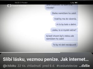 Pozrela som si dnes dokument Českej televízie s názvom Americký voják, ktorý sa zameriava na online romantické podvody. Sledujem videá z YouTube kanála Catfished, ktorý sa venuje jednotlivým príbehom a odhaľovaniu podvodníkov. Minulý rok v apríli som si vybrala päť príbehov žien, ktoré podvodníkom naleteli, a jednotlivo som sa k nim vyjadrovala. Link tu